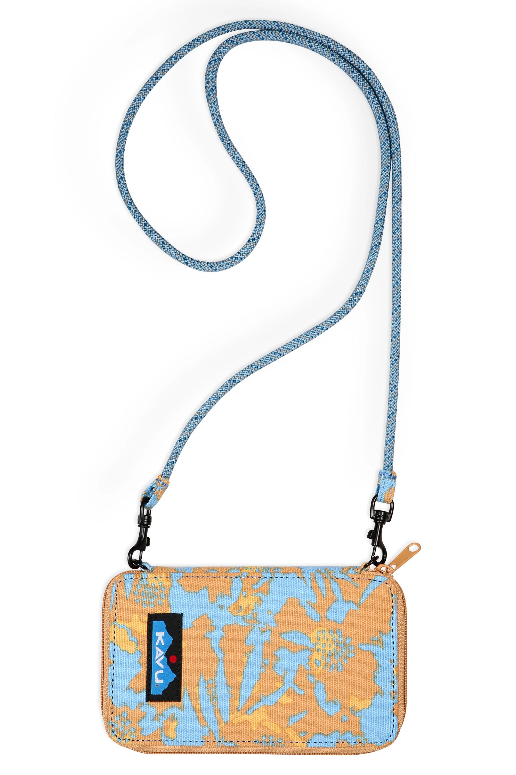 This cross body bi-fold wallet case features a fixed rope shoulder strap that can detach with metal spring hook hardware, one main compartment with zip closure, internal zip pocket and multiple internal cash, card and ID slots. It's go time!